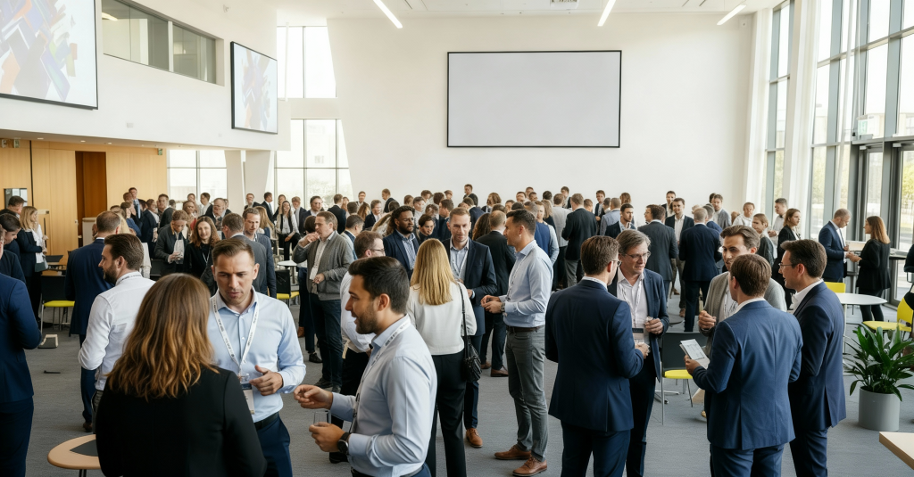 - Sie treffen Menschen aus anderen Unternehmen, mit denen Sie sich austauschen und vernetzen können.